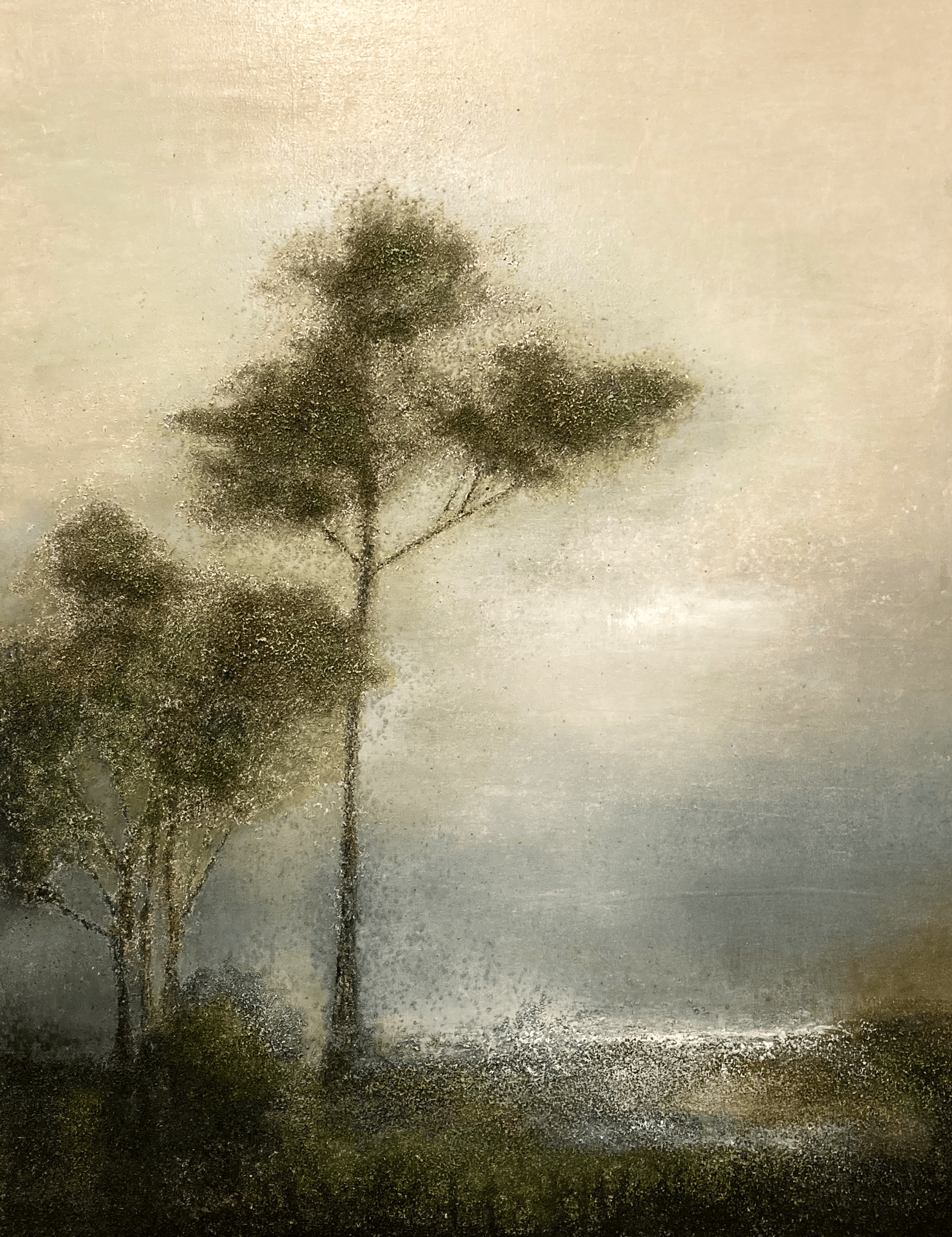 The land feels both open and off-limits — a place that draws you in but keeps its distance. I painted this after coming across a “No Trespassing” sign half-hidden in the brush, thinking about how we separate ourselves from what we belong to. The trees stand as witnesses, rooted beyond the boundaries we’ve made.
