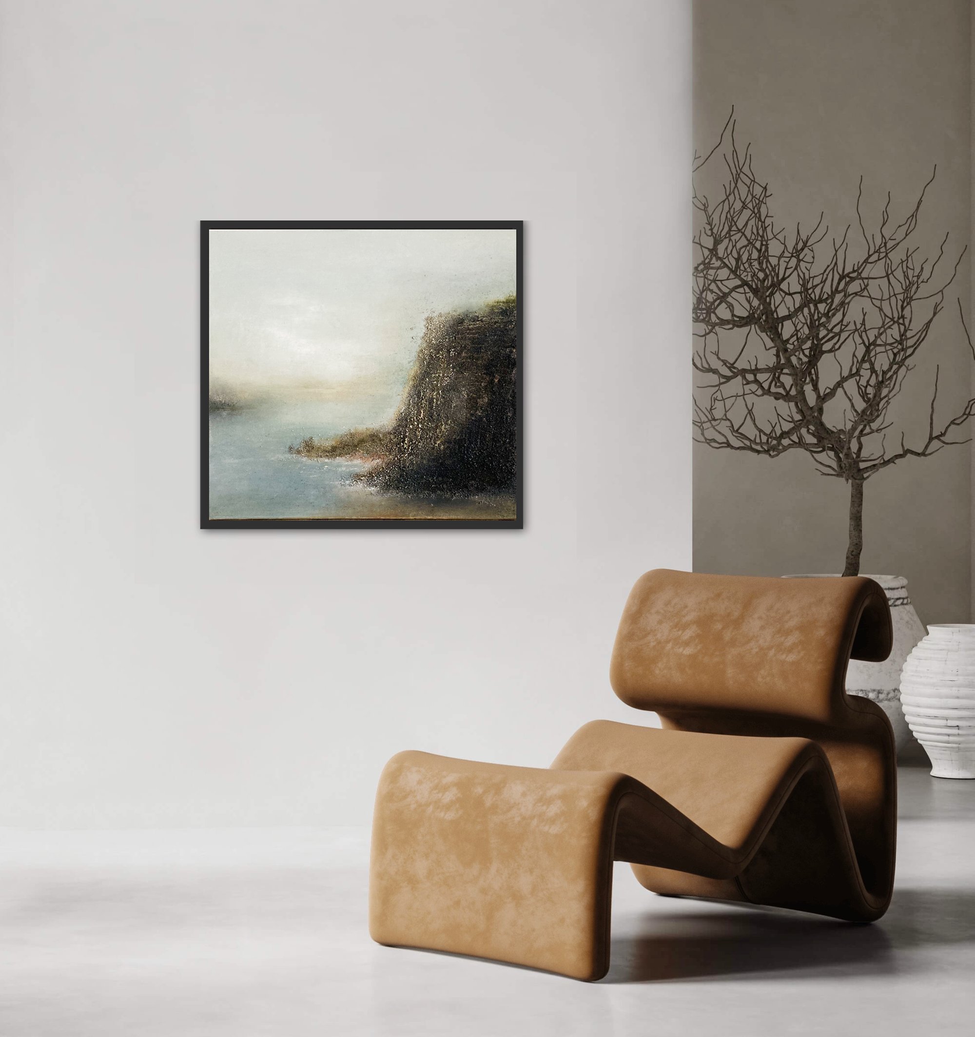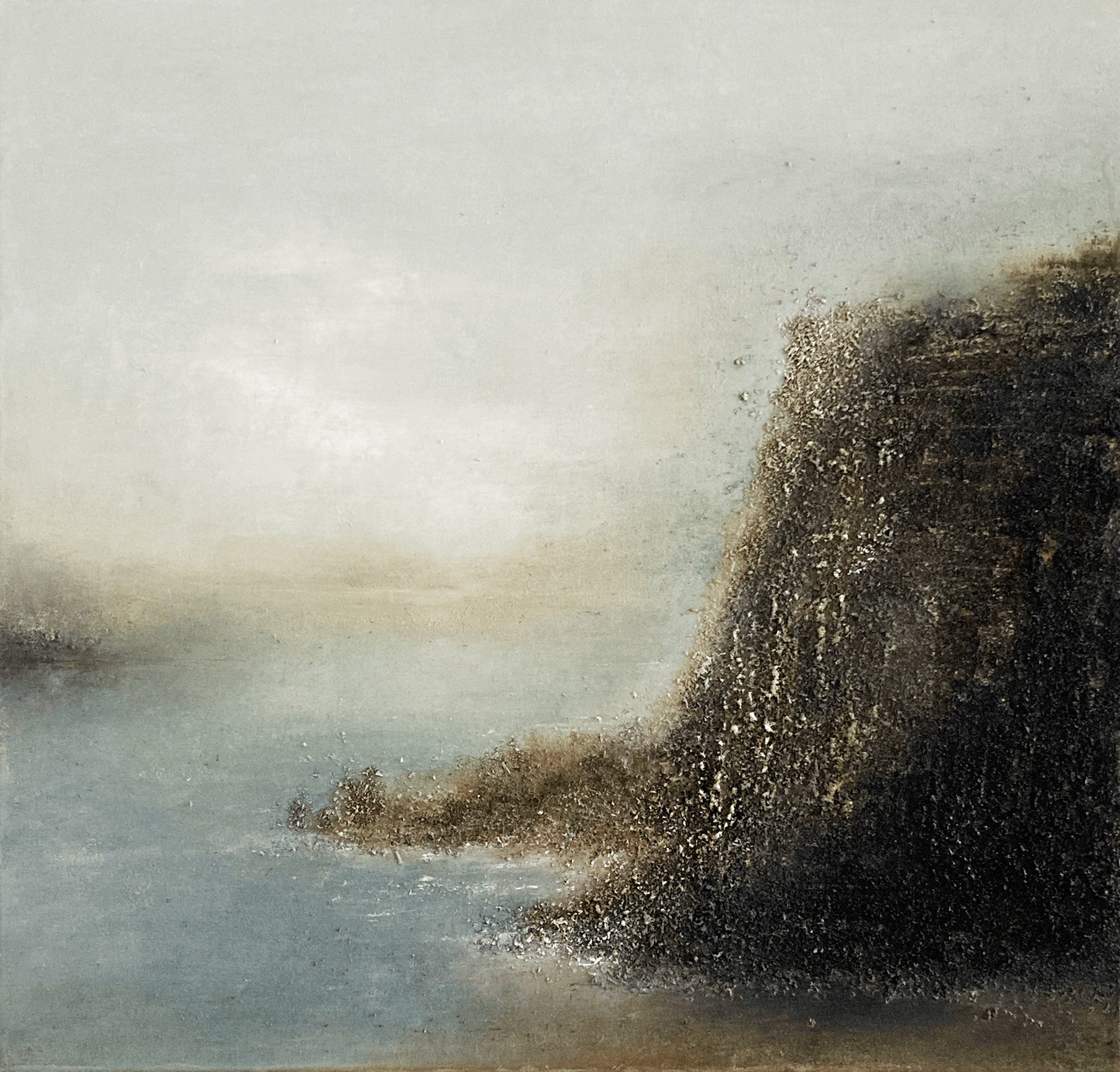 There’s a quiet moment when the world seems to pause, and that feeling became the heart of Secret. It began with a weathered cliff—steady and worn by salt and wind—before soft layers of mist and water started to take over. As I painted, the edges blurred and the scene became less about place and more about what’s hidden just beneath the surface.
